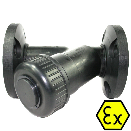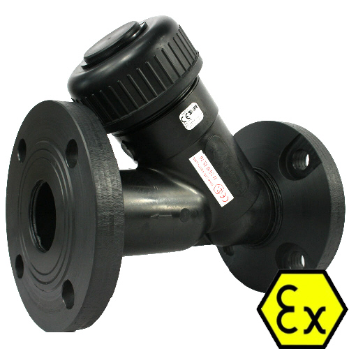 Schmutzfänger aus PP-elektrisch leitfähig, Flanschanschluß, FKM Dichtung
