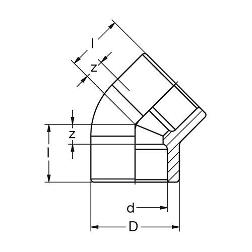 Durchmesser und Wanddicke der Muffen entsprechend DIN EN ISO 15874.Toleranzen bei den Z-Maßangaben sind abhängig von der Dimension. Bis d/D 160 = +/- 3 mm. Ab d/D 180 = +/- 10 mm.