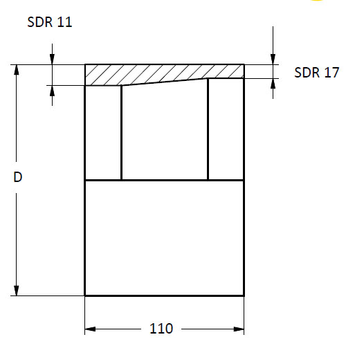 Die Verschweißung der Rohrleitungskomponenten erfolgt nach DVS Richtlinie 2207?11 und der Einsatz von Gerätetechnik nach DVS 2208. Ein Versatz ist bis zu einem Wert von 0,1 x Wandstärke zulässig. Grundsätzlich ist beim Heizelement?Stumpfschweißen nach DVS nur eine Verschweißung gleicher SDR Klassen vorgesehen. Angaben wie Aufheizzeiten, Fügedruck, usw. sind auf die Gleichheit der Wandstärke abgestimmt. Nur durch Einhaltung der vorgegebenen Parameter ist eine stoff- und kraftschlüssige Verbindung gewährleistet. Bedingt durch unterschiedliche Aufheizzeiten und Anpressdrücke ist eine Verschweißung unterschiedlicher Wandstärken nach DVS nicht zulässig. In der Praxis ist aber genau dieses Problem keine Seltenheit und man hat öfters die Situation der unterschiedlichen Wandstärke von Rohr und Formteil. Für diese Situation haben wir ab sofort eine praktische und kostengünstige Lösung anzubieten. Die Bauteillänge von 110 mm bei allen Dimensionen, ist so gewählt, das die Teile bequem eingespannt werden können, die Baulänge sich jedoch nur minimal erweitert. - Kostengünstig - Leicht zu verarbeiten - Überall einsetzbar - Fachgerechte Lösung - DVS konform Voraussetzung für ein fachgerechtes Schweißen sind: - Qualifikation des Schweißpersonals nach DVGW GW 330 bzw. DVS 2212-1 oder gleichwertig. - Durchführung nach DVS 2207-1 und Einsatz von Gerätetechnik nach DVS 2208-1 oder gleichwertig. - Überwachung der Schweißarbeiten durch eine Schweißaufsicht nach DVGW GW 331 bzw. DVS 2212-1 (Beiblatt 1) oder gleichwertig. - Erfolgt eine Verschweißung nach anderen Richtlinien als der DVS, so liegt es im Verantwortungsbereich des Verarbeiters von den Vorgaben der DVS abzuweichen. In solchen Fällen geht jegliche Gewährleistung für die Verbindung der verwendeten Komponenten auf den Verarbeiter über. |